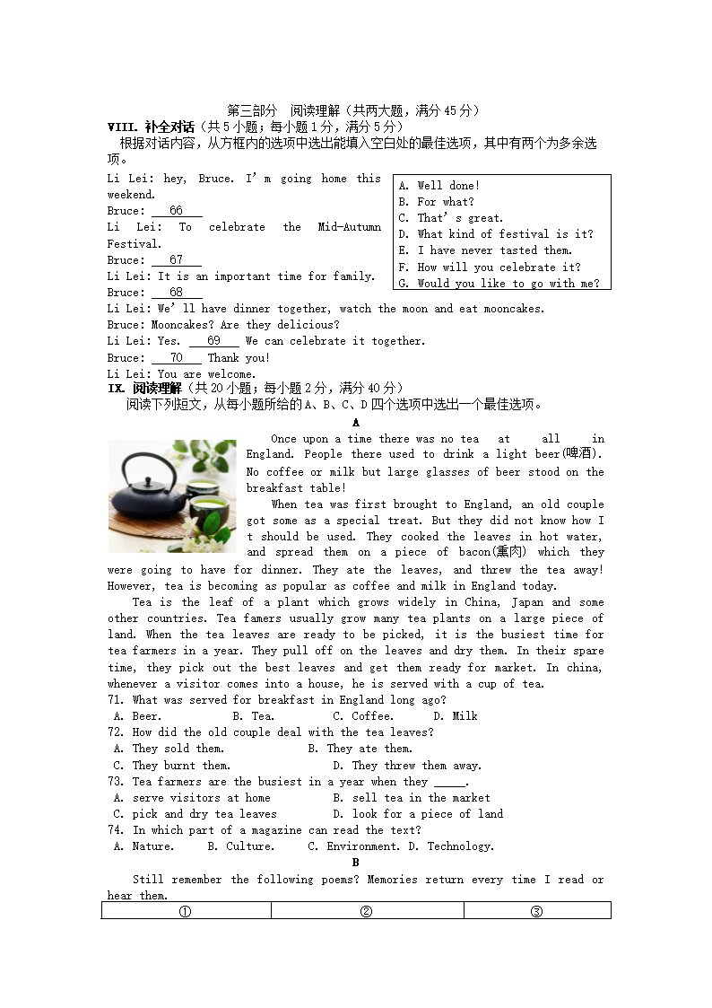 【文档预览】 无忧考网整理发布2017年安徽蚌埠中考英语真题及答案(Word版),前五页预览如下: