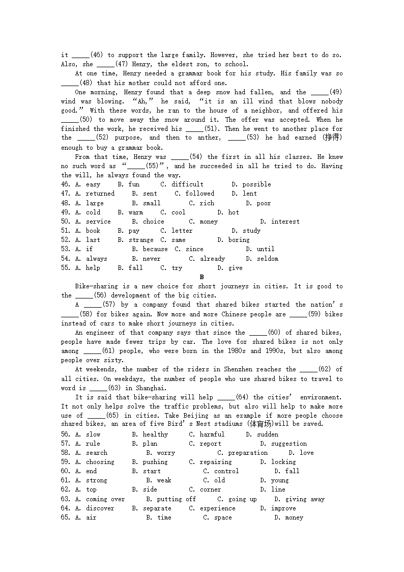【文档名称】 2017年安徽蚌埠中考英语真题及答案(Word版).doc