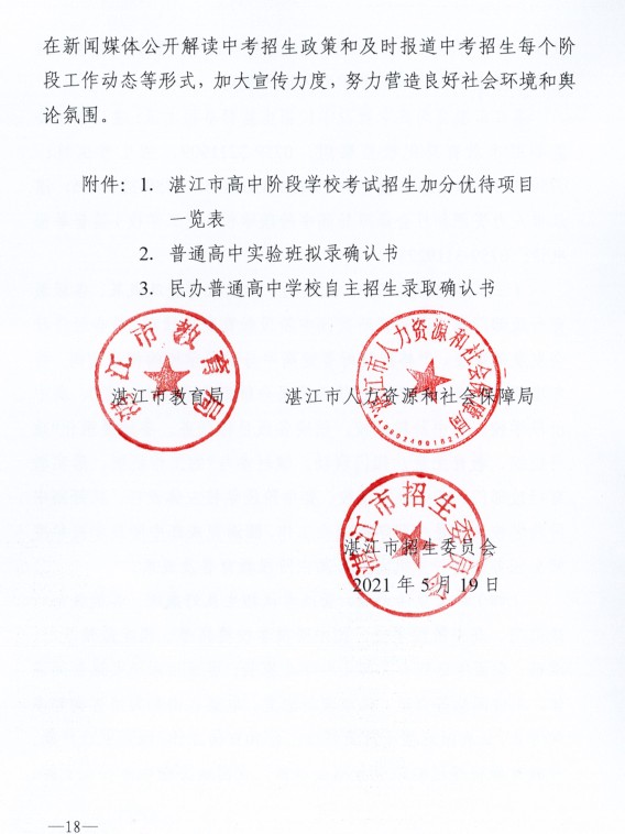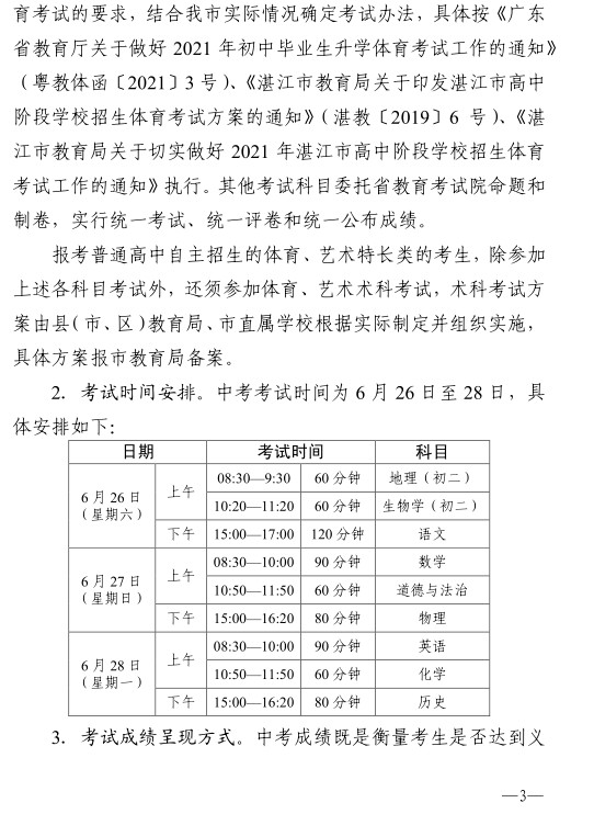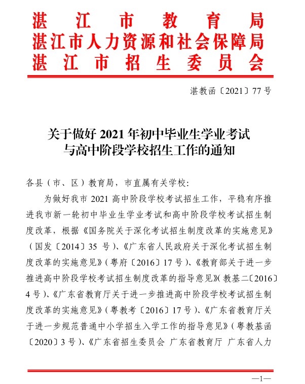 湛江市教育局:2021年广东湛江初中毕业生学业考试与高中阶段