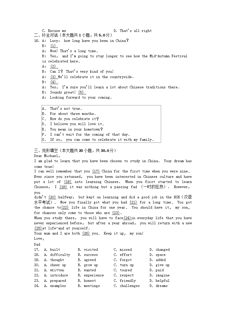 【文档预览】 无忧考网整理发布2019年安徽合肥中考英语真题及答案(Word版),前五页预览如下: