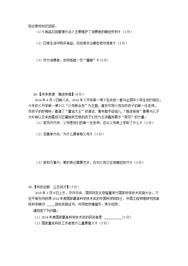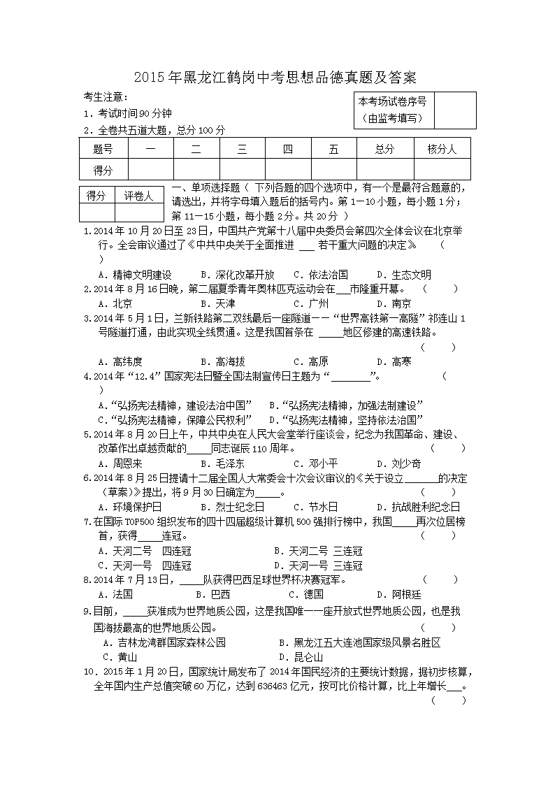【文档名称】 2015年黑龙江鹤岗中考思想品德真题及答案(Word版).doc