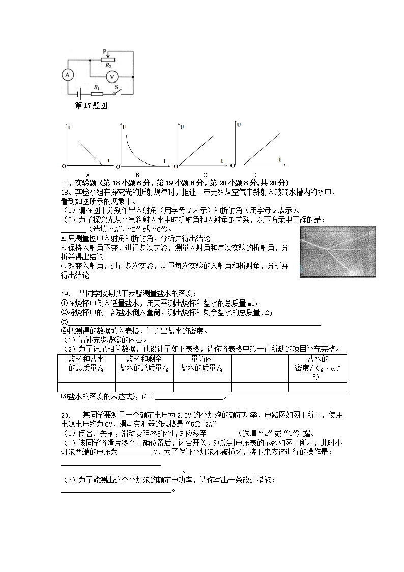 【文档名称】 2015年安徽巢湖中考物理真题及答案(Word版).doc