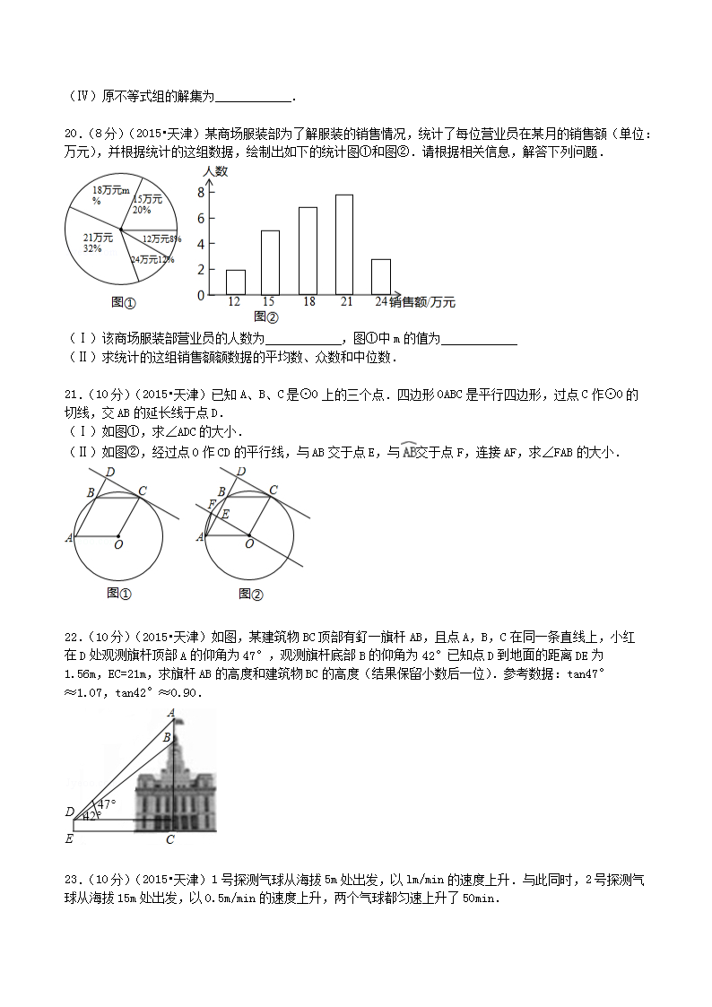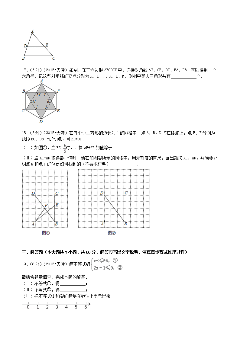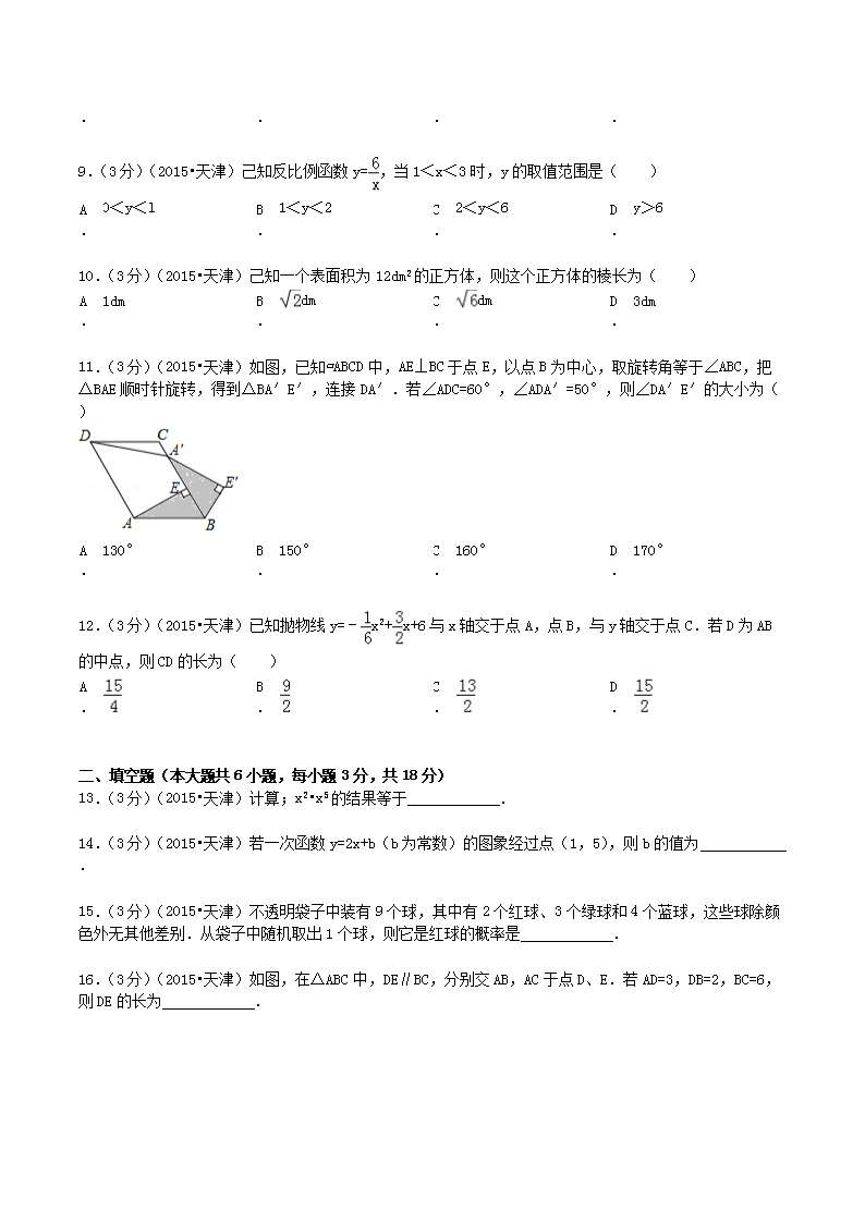 【文档名称】 2015天津宝坻中考数学真题及答案(Word版).doc