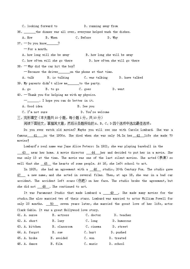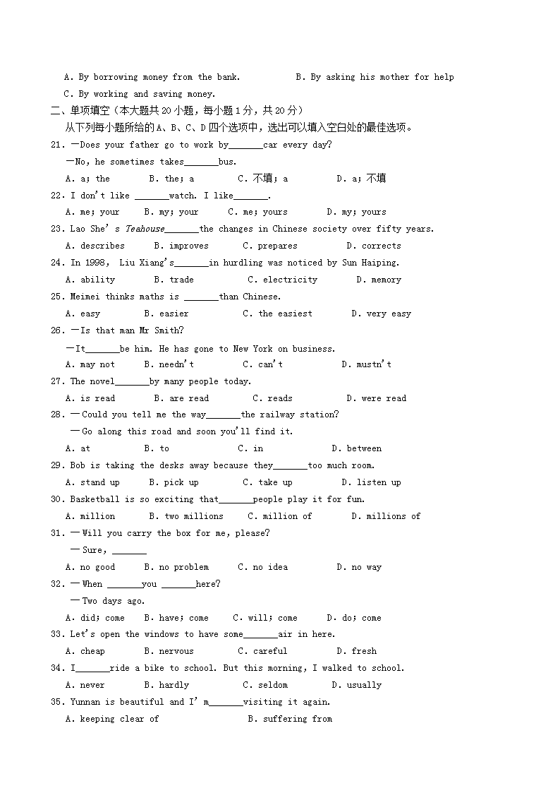 【文档名称】 2015天津宝坻中考英语真题及答案(Word版).doc