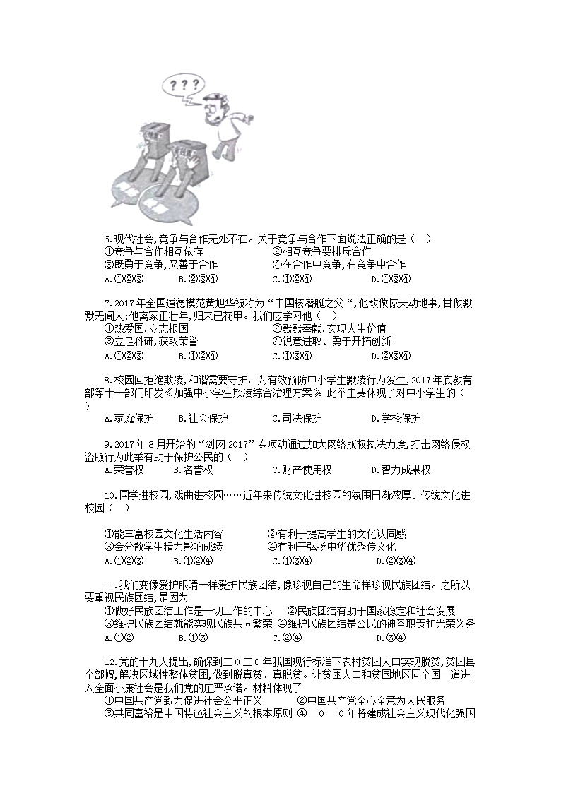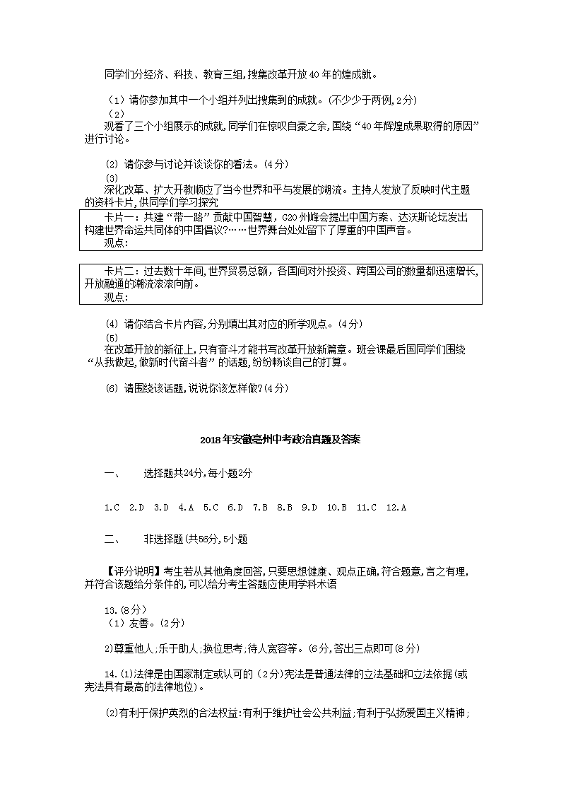 【文档名称】 2018年安徽铜陵中考政治真题及答案(Word版).doc