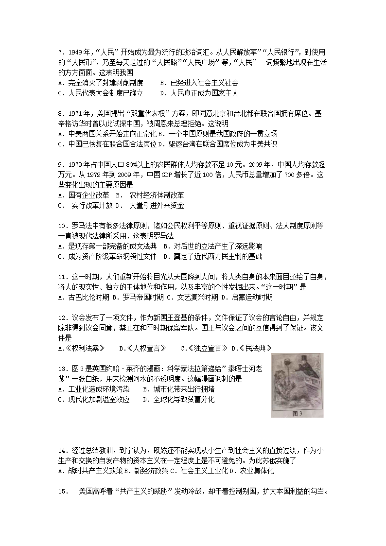 【文档名称】 2019年安徽铜陵中考历史真题及答案(Word版).doc