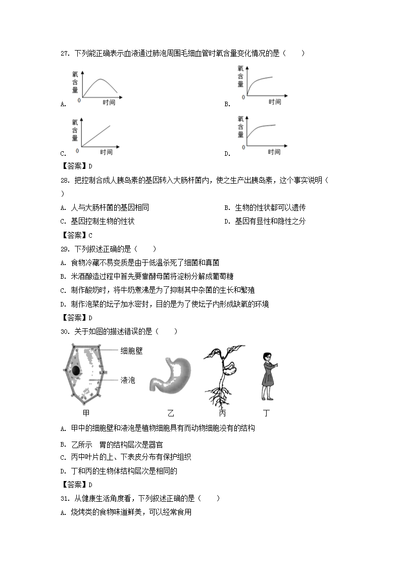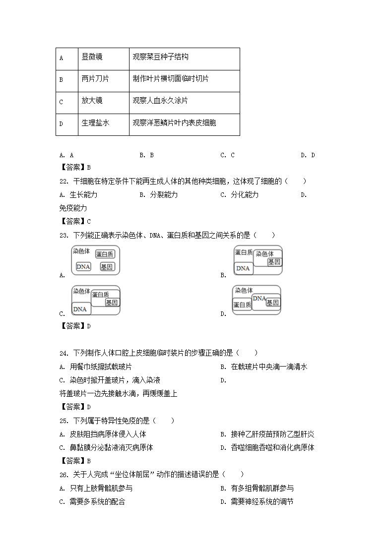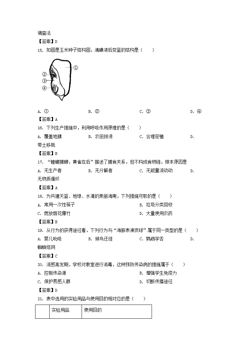 【文档名称】 2019年海南海口中考生物真题及答案(Word版).doc
