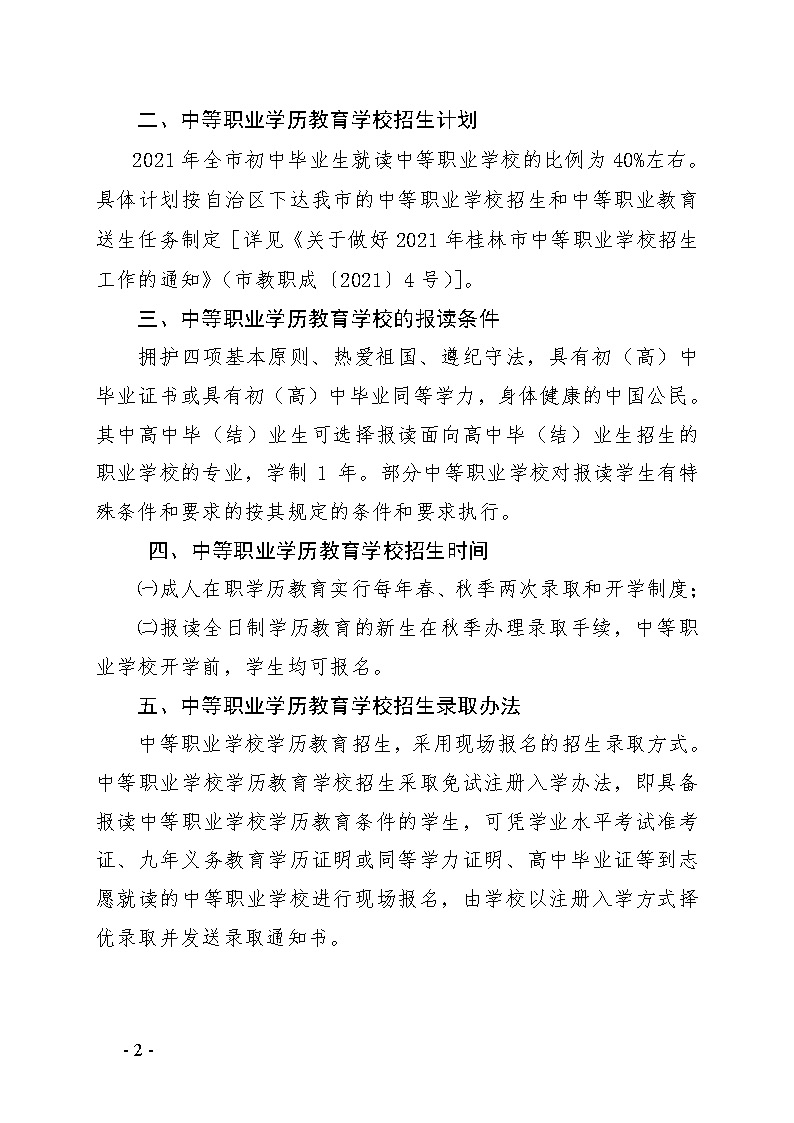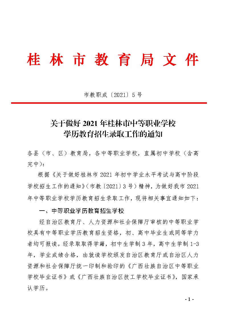 2021年广西桂林中等职业学校学历教育招生录取工作的通知