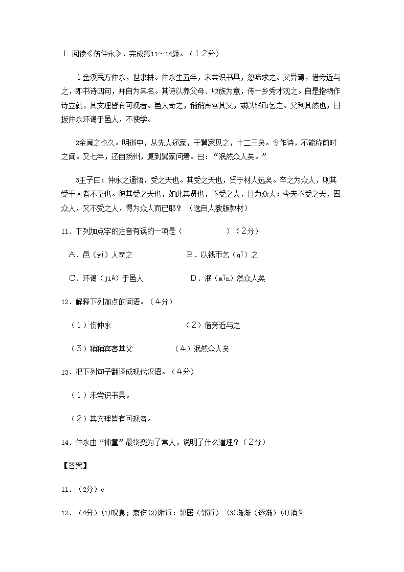 【文档名称】 2015年海南中考语文真题及答案(Word版).doc
