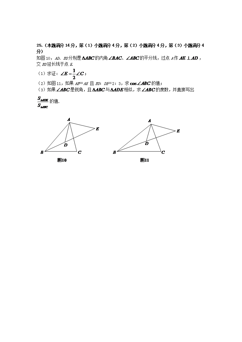【文档名称】 2019年上海青浦中考数学真题及答案(Word版).doc