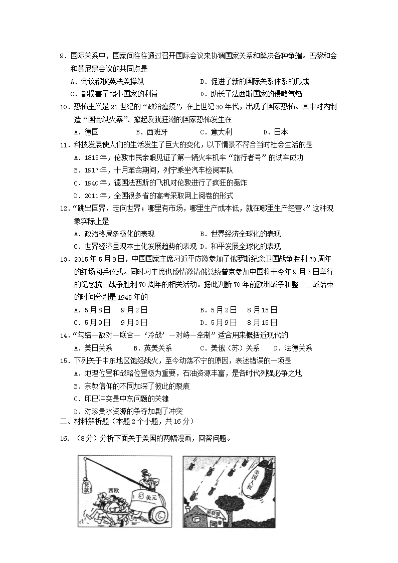 【文档名称】 2015年内蒙古呼伦贝尔中考历史真题及答案(Word版).doc