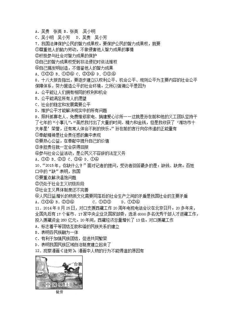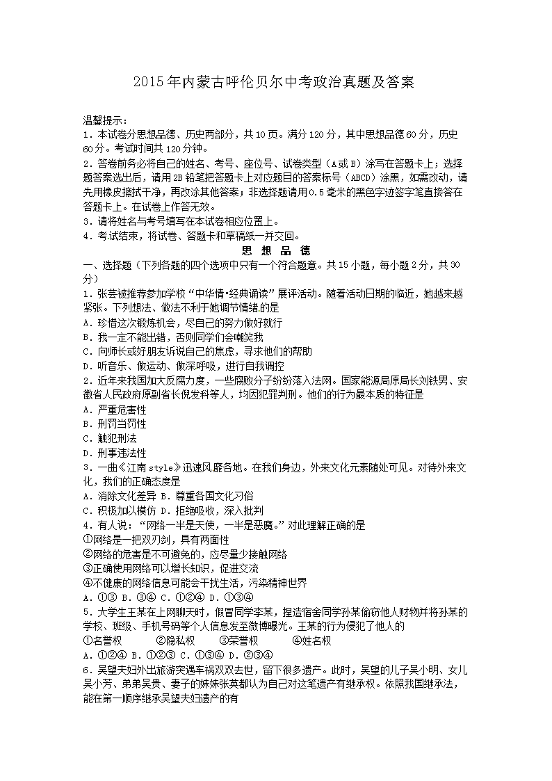 【文档名称】 2015年内蒙古呼伦贝尔中考政治真题及答案(Word版).doc