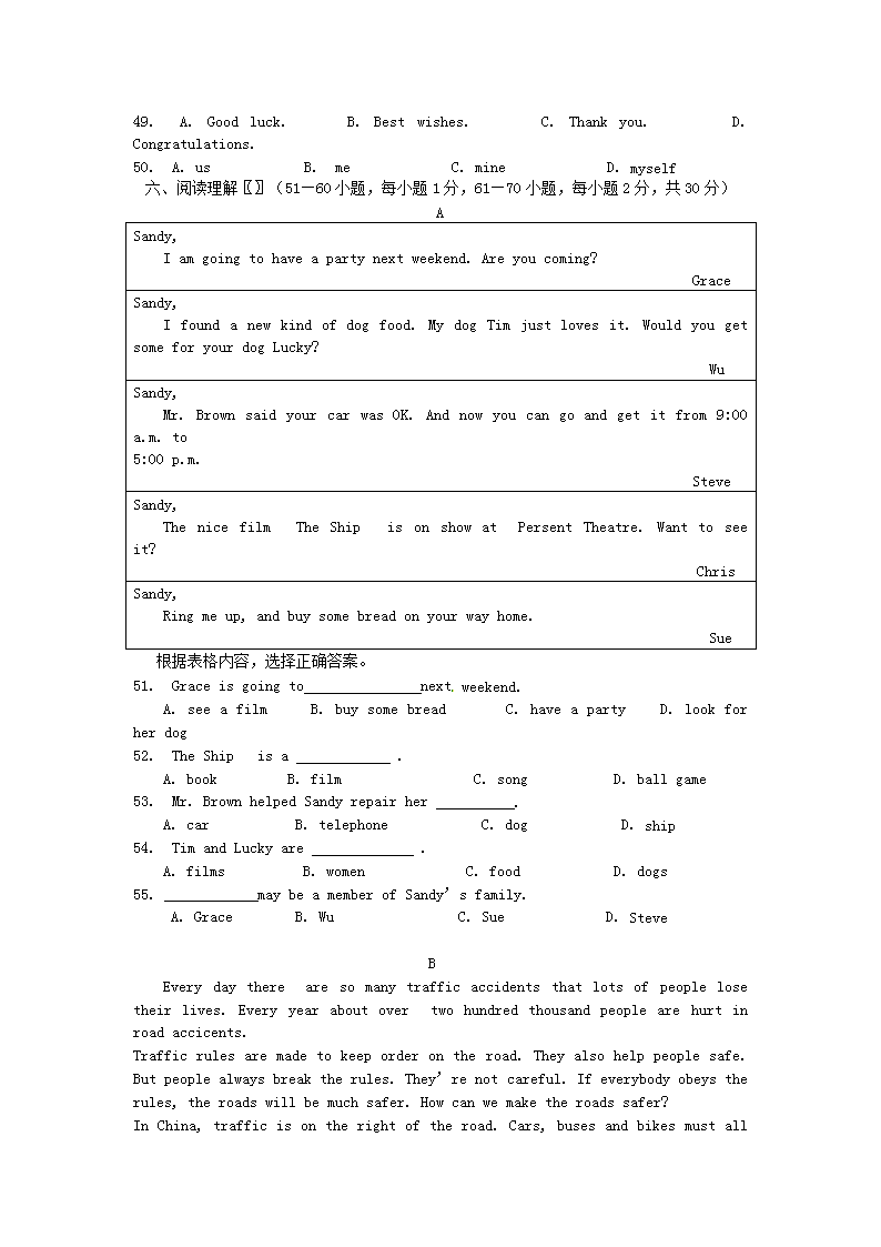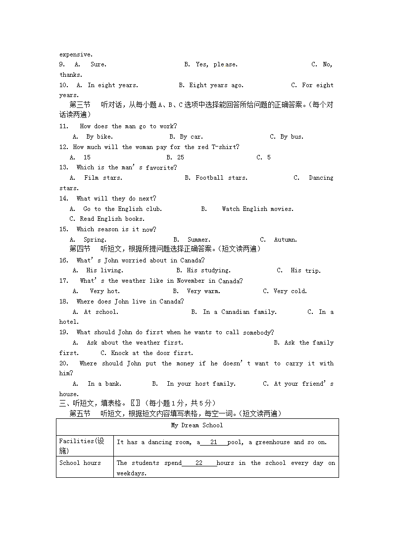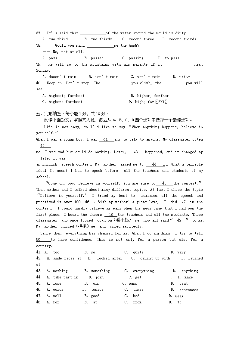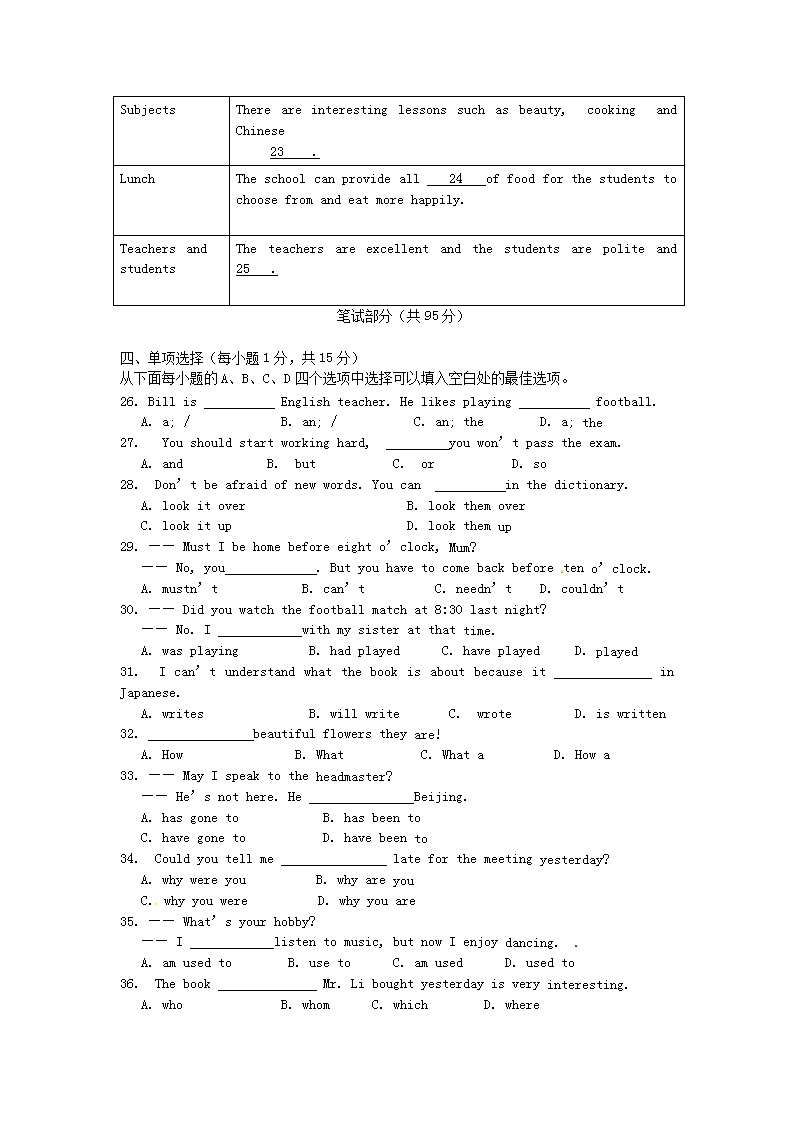 【文档预览】 无忧考网整理发布2015年内蒙古通辽中考英语真题及答案(Word版),前五页预览如下: