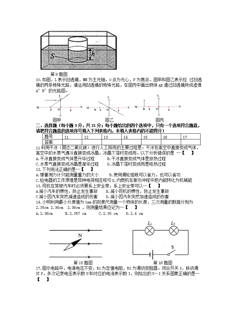 【文档预览】 无忧考网整理发布2015年安徽滁州中考物理真题及答案(Word版),前五页预览如下: