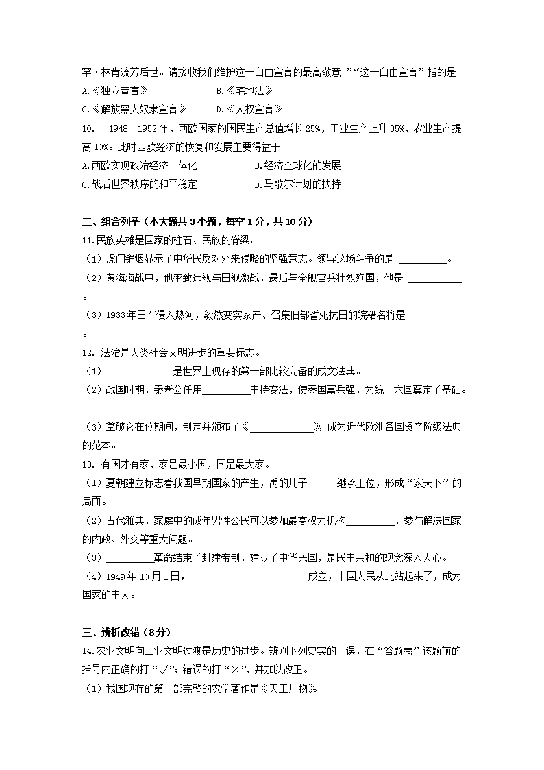 【文档名称】 2016年安徽滁州中考历史真题及答案(Word版).doc