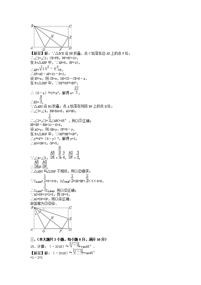 【文档名称】 2016年安徽滁州中考数学真题及答案(Word版).doc