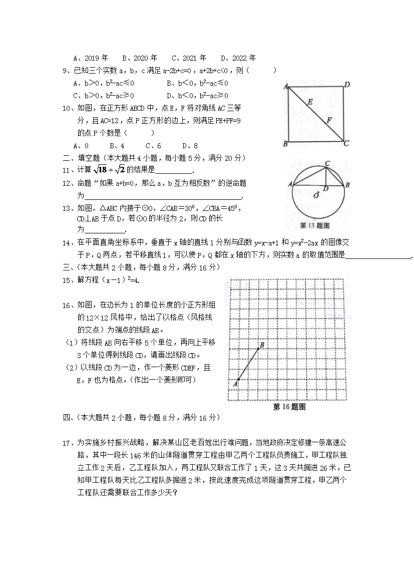 【文档名称】 2019年安徽黄山中考数学真题及答案(Word版).doc