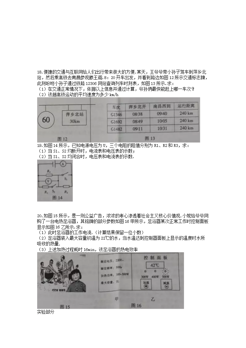 【文档预览】 无忧考网整理发布2016年江西吉安中考物理真题及答案(Word版),前五页预览如下:
