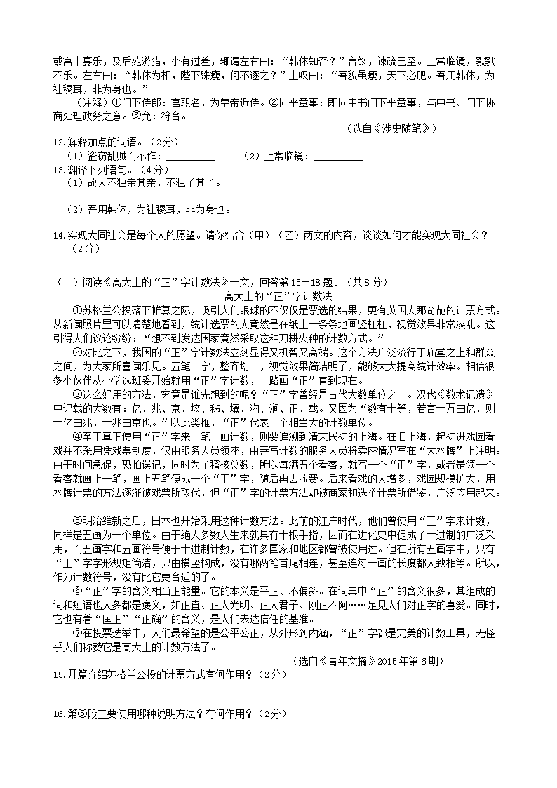 【文档预览】 无忧考网整理发布2015年黑龙江佳木斯中考语文真题及答案(Word版),前五页预览如下: