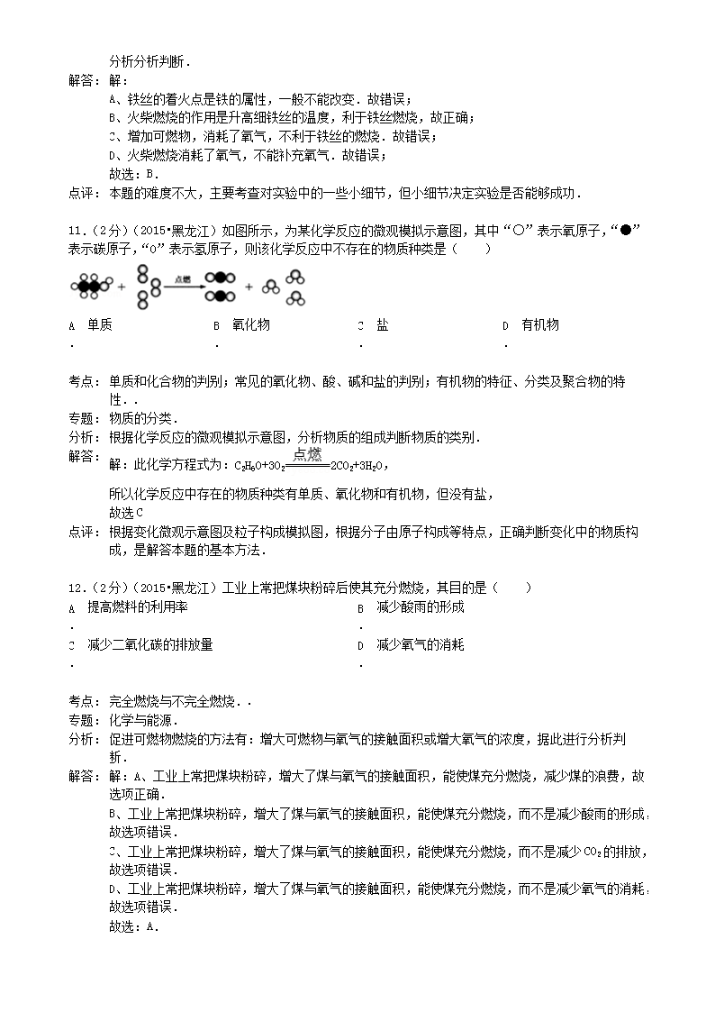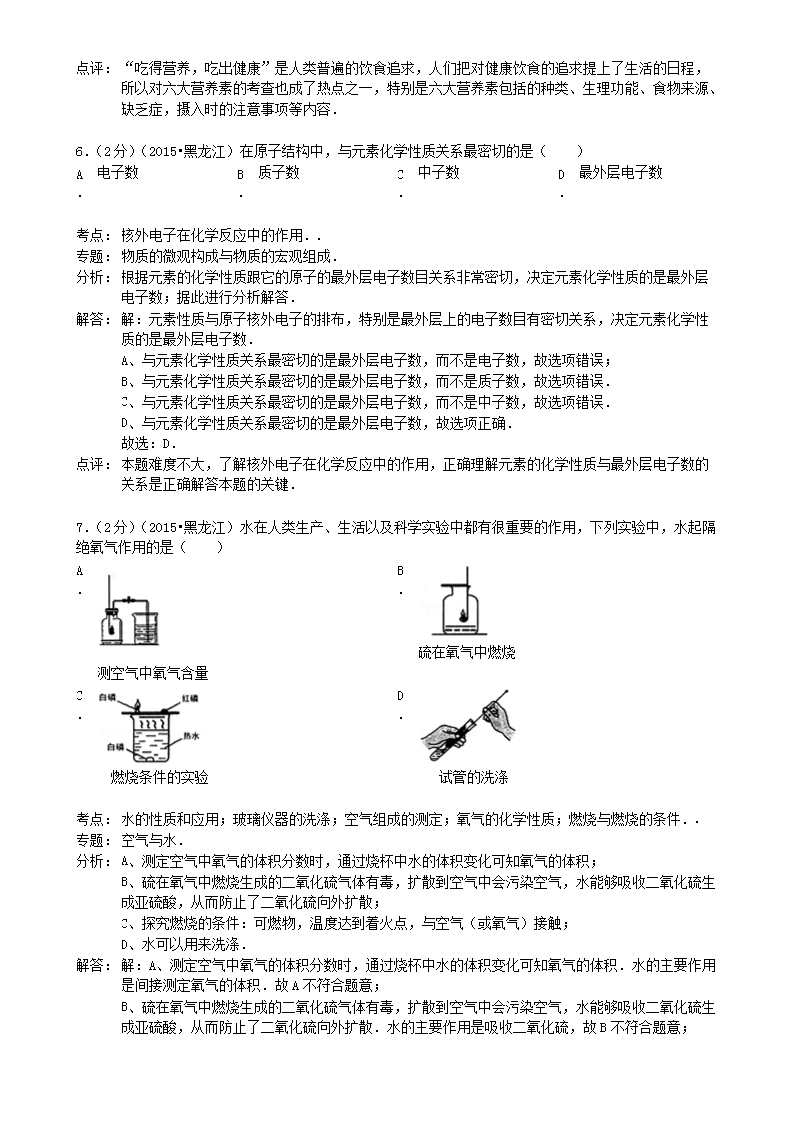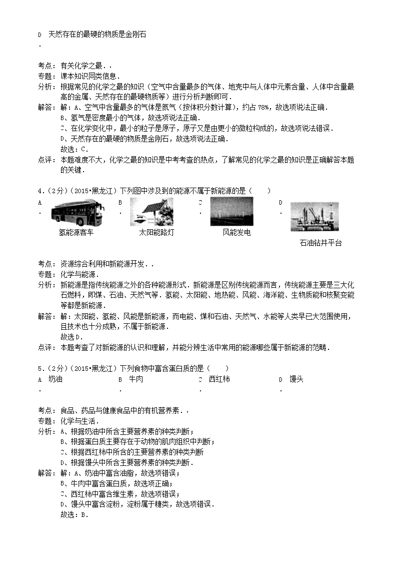 【文档名称】 2015年黑龙江双鸭山中考化学真题及答案(Word版).doc