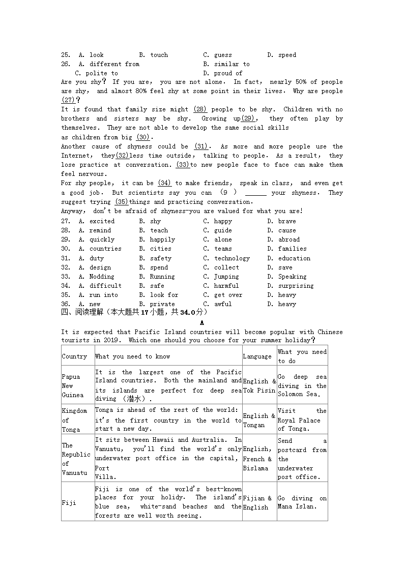 【文档名称】 2019年安徽马鞍山中考英语真题及答案(Word版).doc