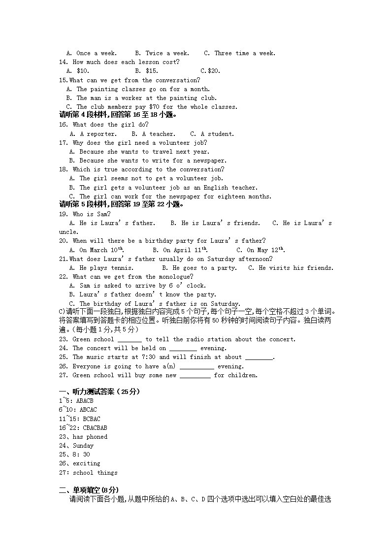 【文档预览】 无忧考网整理发布2016年江西吉安中考英语真题及答案(Word版),前五页预览如下: