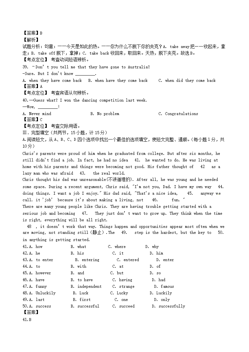【文档预览】 无忧考网整理发布2015年青海省海东中考英语真题及答案(Word版),前五页预览如下:
