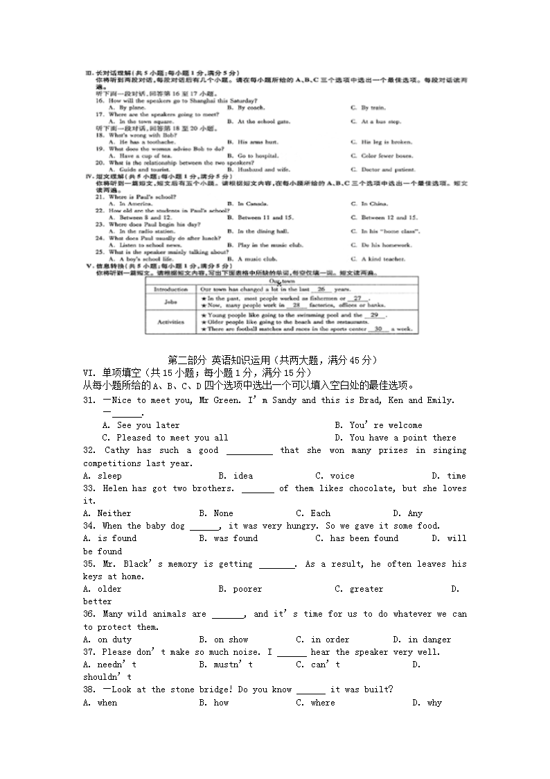 【文档预览】 无忧考网整理发布2016年安徽芜湖中考英语真题及答案(Word版),前五页预览如下: