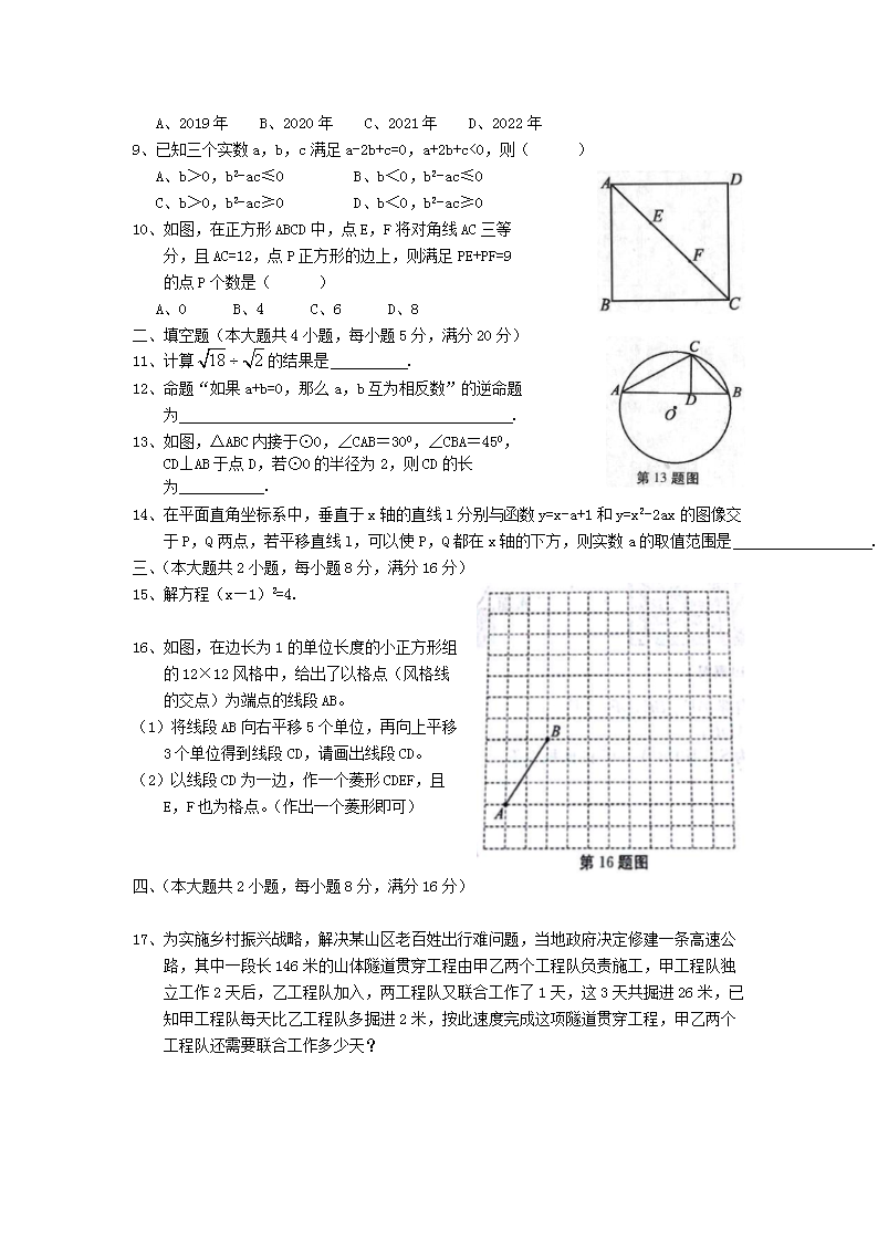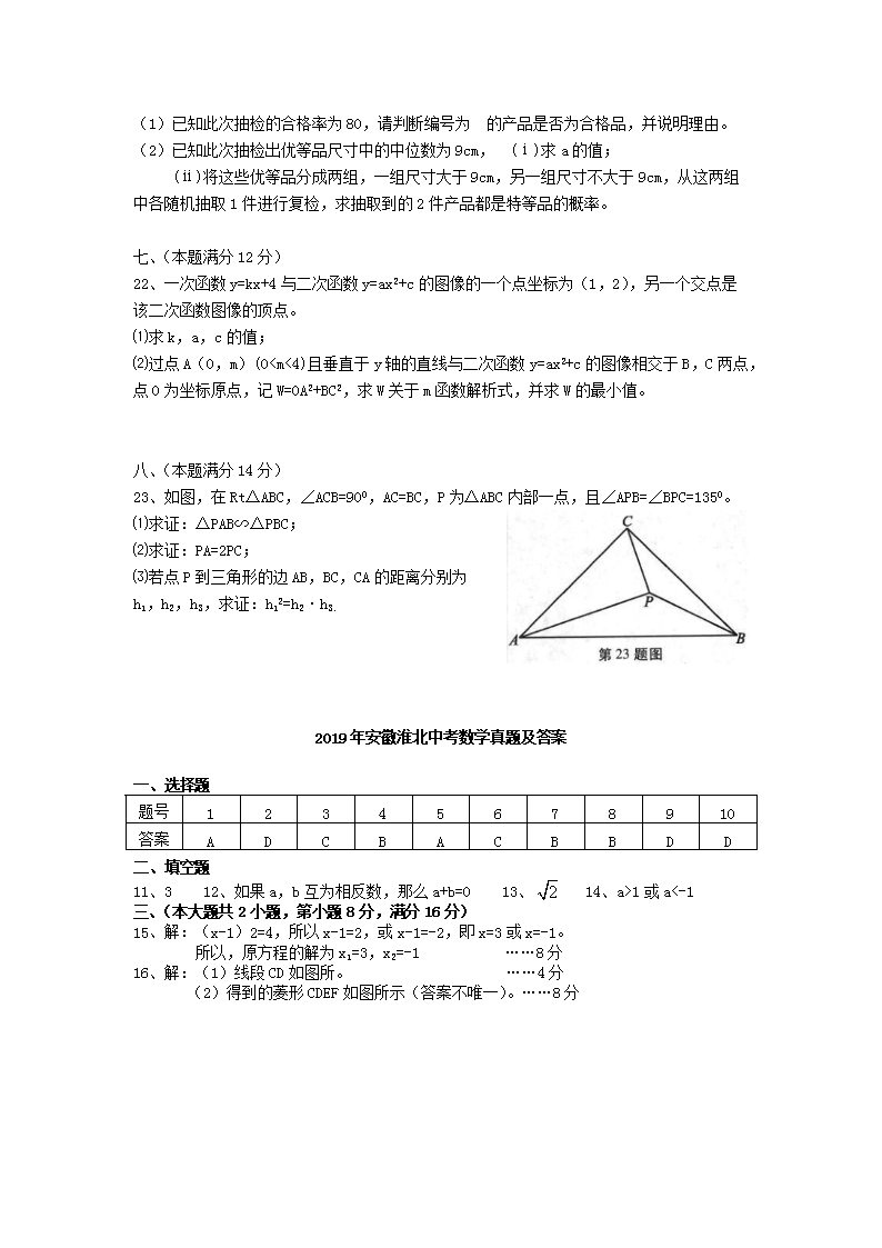 【文档名称】 2019年安徽淮北中考数学真题及答案(Word版).doc