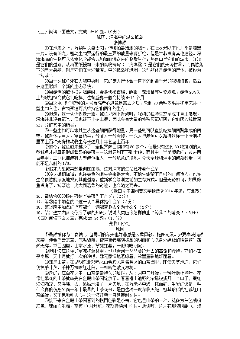 【文档预览】 无忧考网整理发布2015年云南临沧中考语文真题及答案(Word版),前五页预览如下: