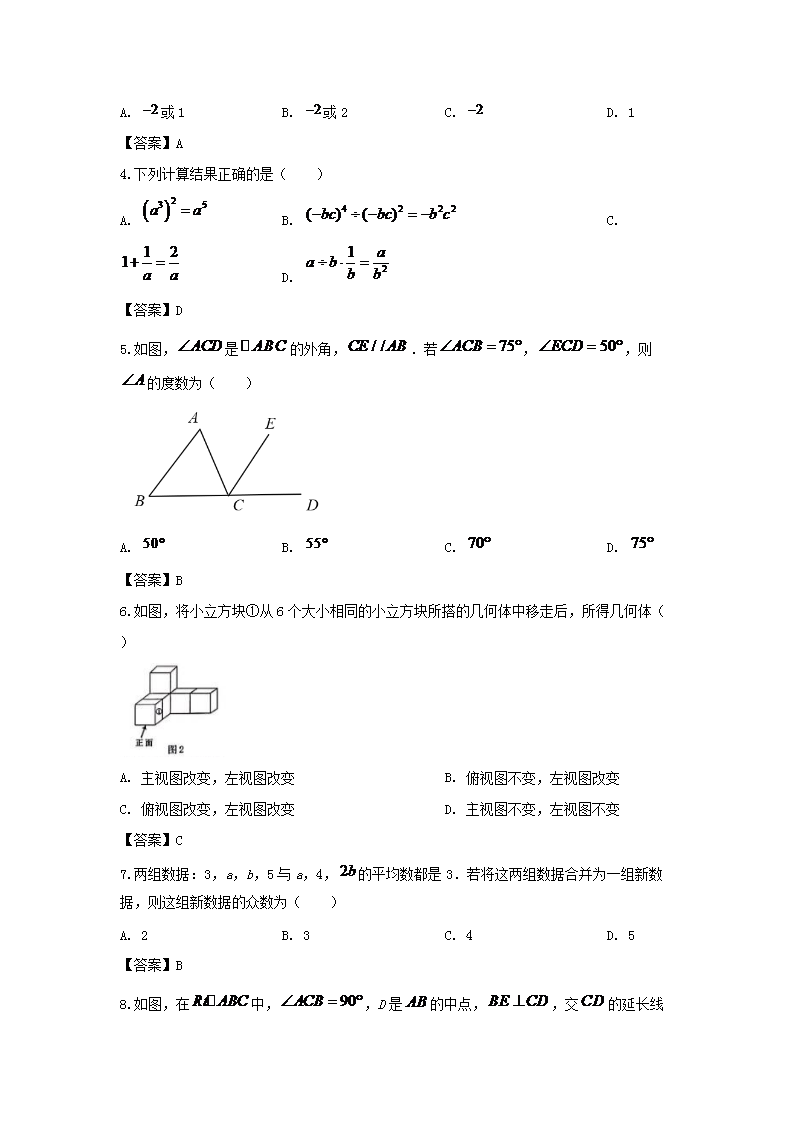 【文档名称】 2020年内蒙古乌海中考数学真题及答案(Word版).doc