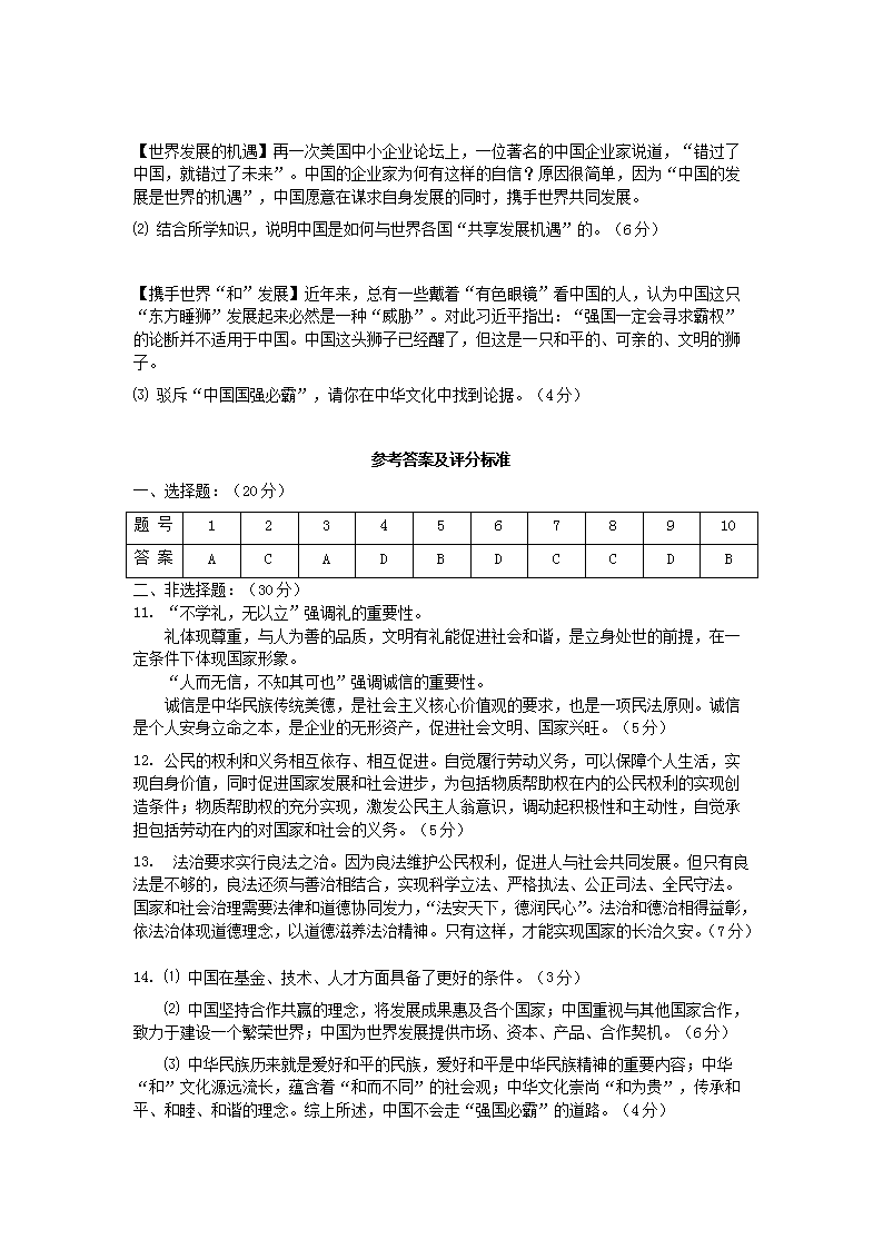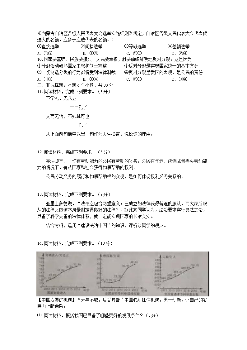 【文档名称】 2019年内蒙古乌海中考政治真题及答案(Word版).doc