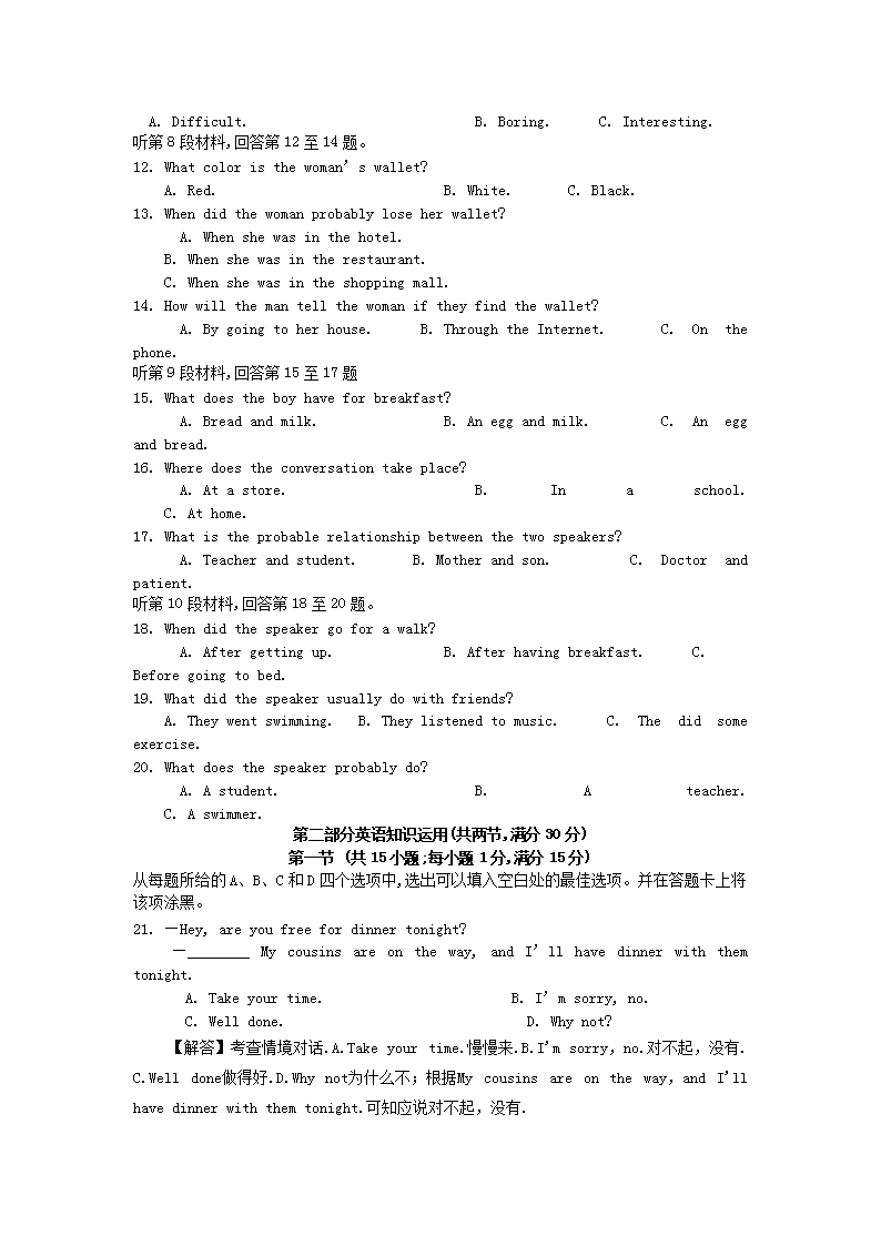 【文档预览】 无忧考网整理发布2019年内蒙古鄂尔多斯中考英语真题及答案(Word版),前五页预览如下:
