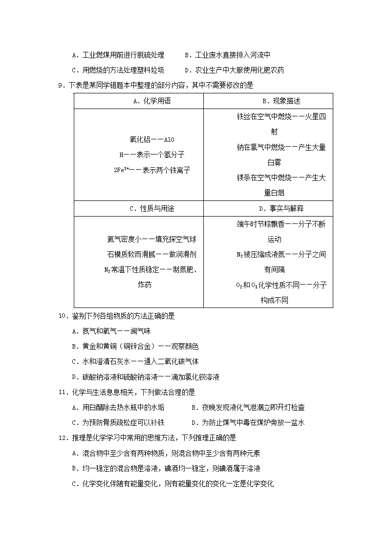 【文档名称】 2017年内蒙古赤峰市中考化学真题及答案(Word版).doc