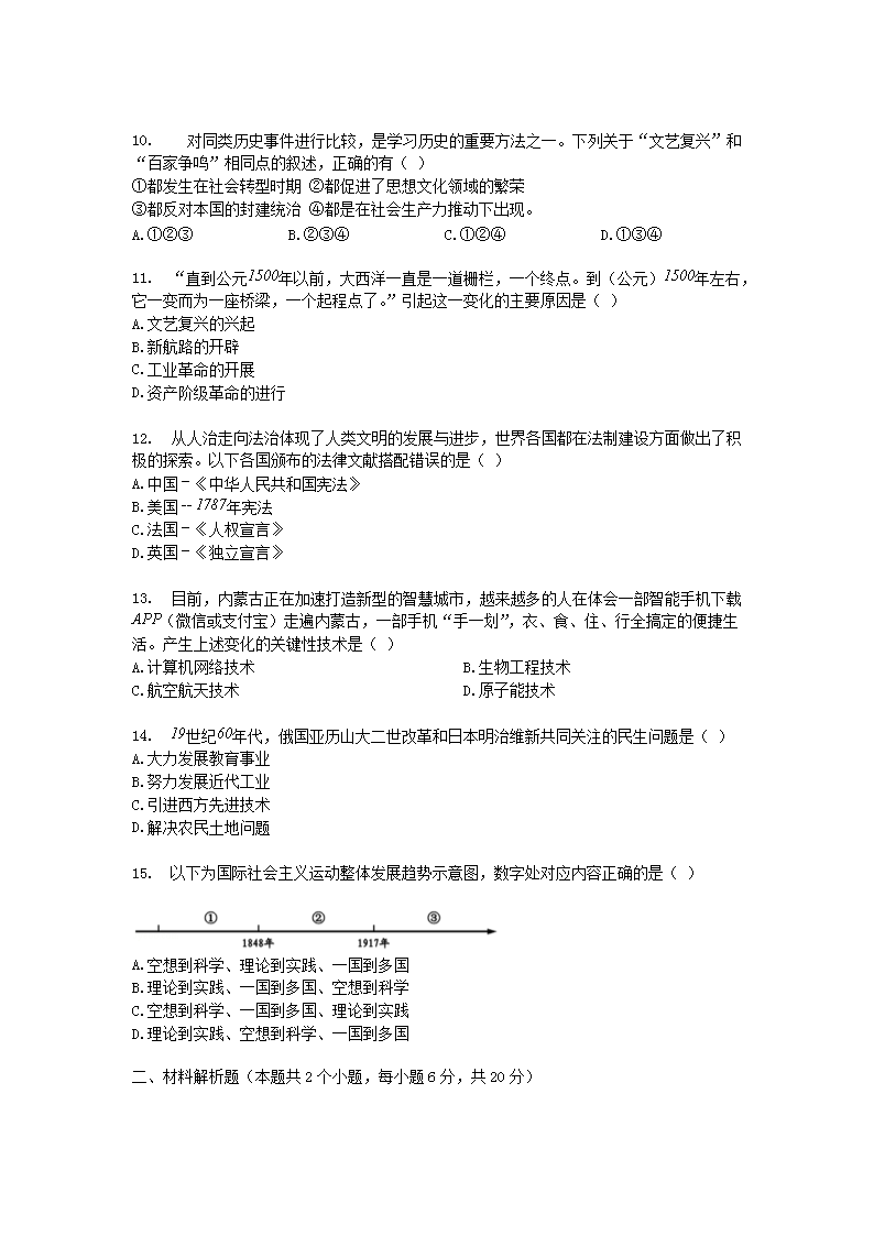 【文档名称】 2018年内蒙古兴安盟中考历史真题及答案(Word版).doc