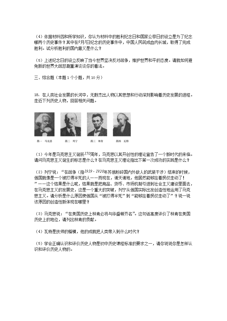 【文档预览】 无忧考网整理发布2018年内蒙古兴安盟中考历史真题及答案(Word版),前五页预览如下: