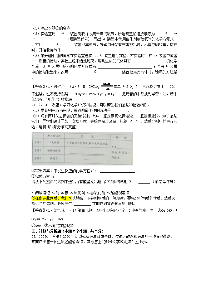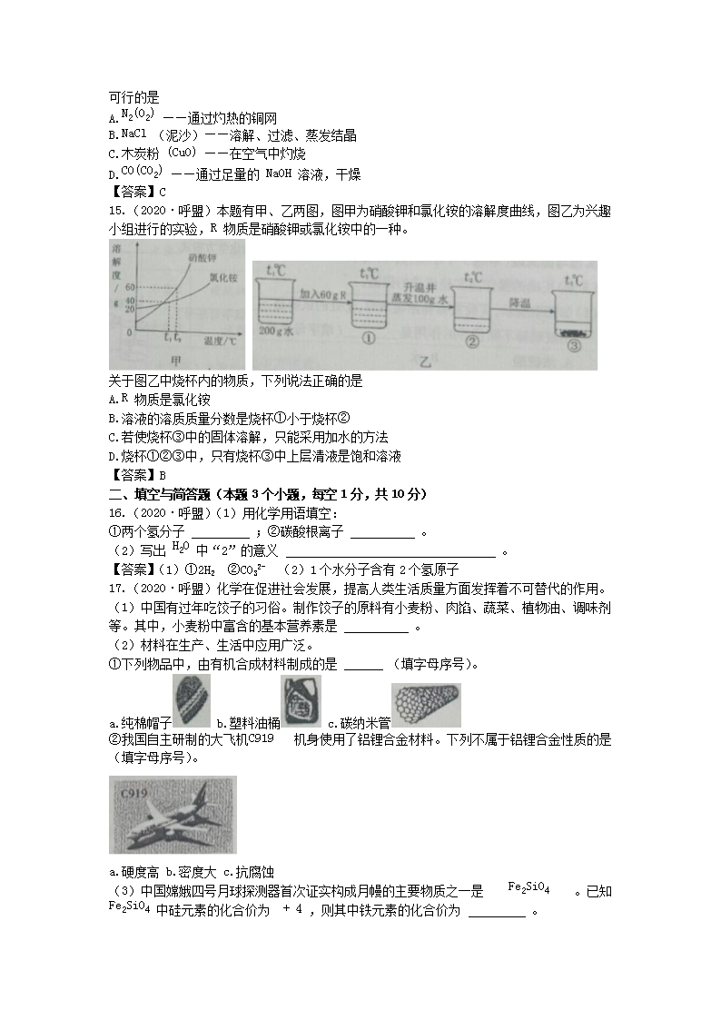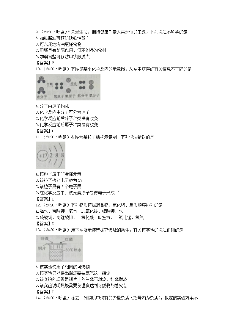 【文档名称】 2020年内蒙古兴安盟中考化学真题及答案(Word版).doc