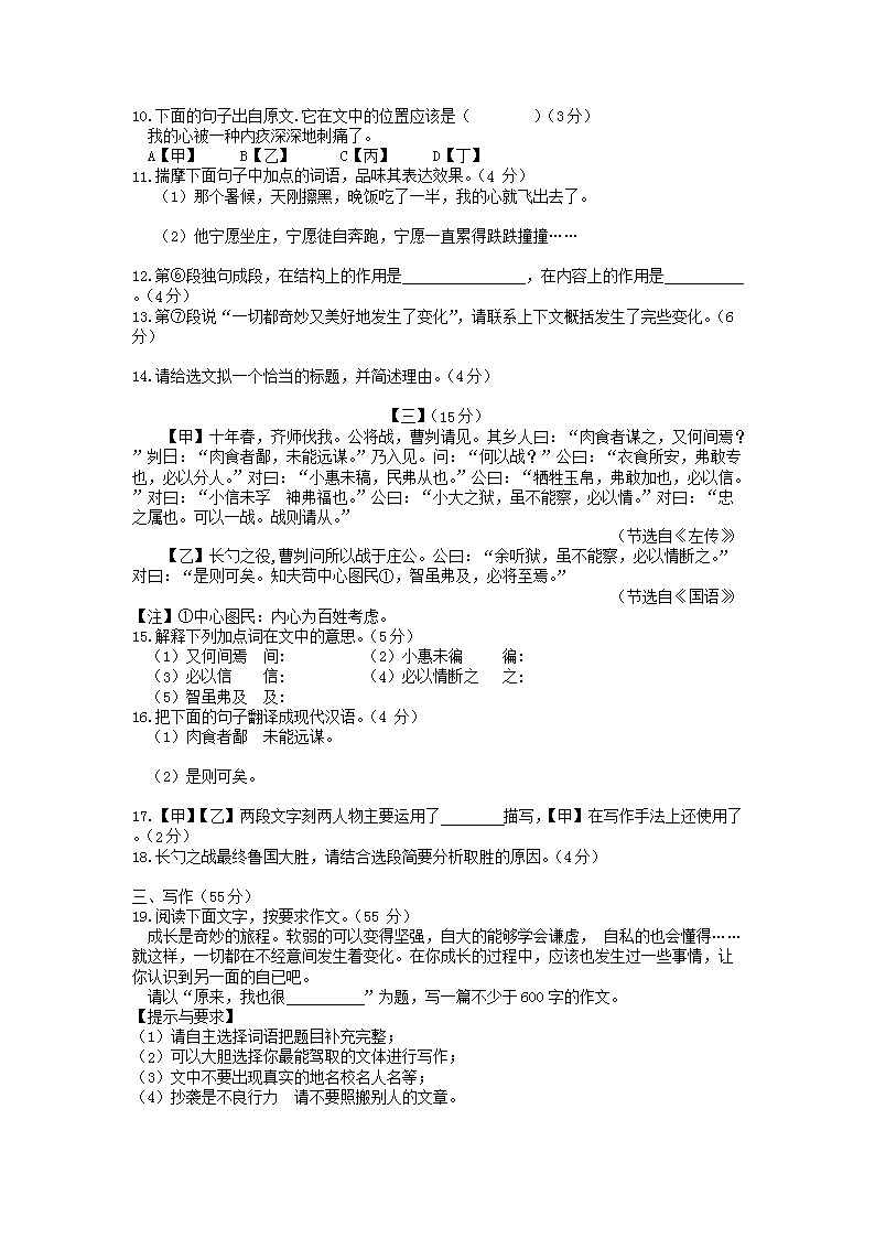 【文档名称】 2018年安徽淮南中考语文真题及答案(Word版).doc