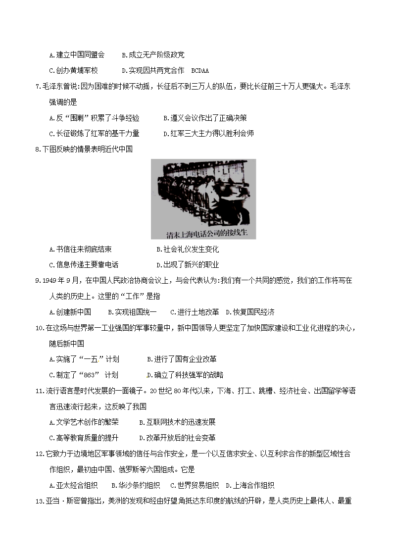 【文档名称】 2018年河南安阳中考历史真题及答案(Word版).doc