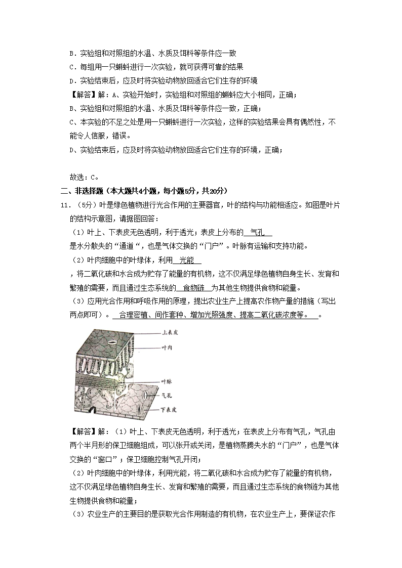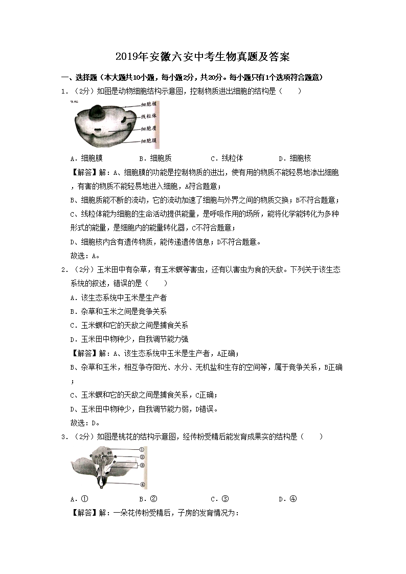 【文档名称】 2019年安徽六安中考生物真题及答案(Word版).doc
