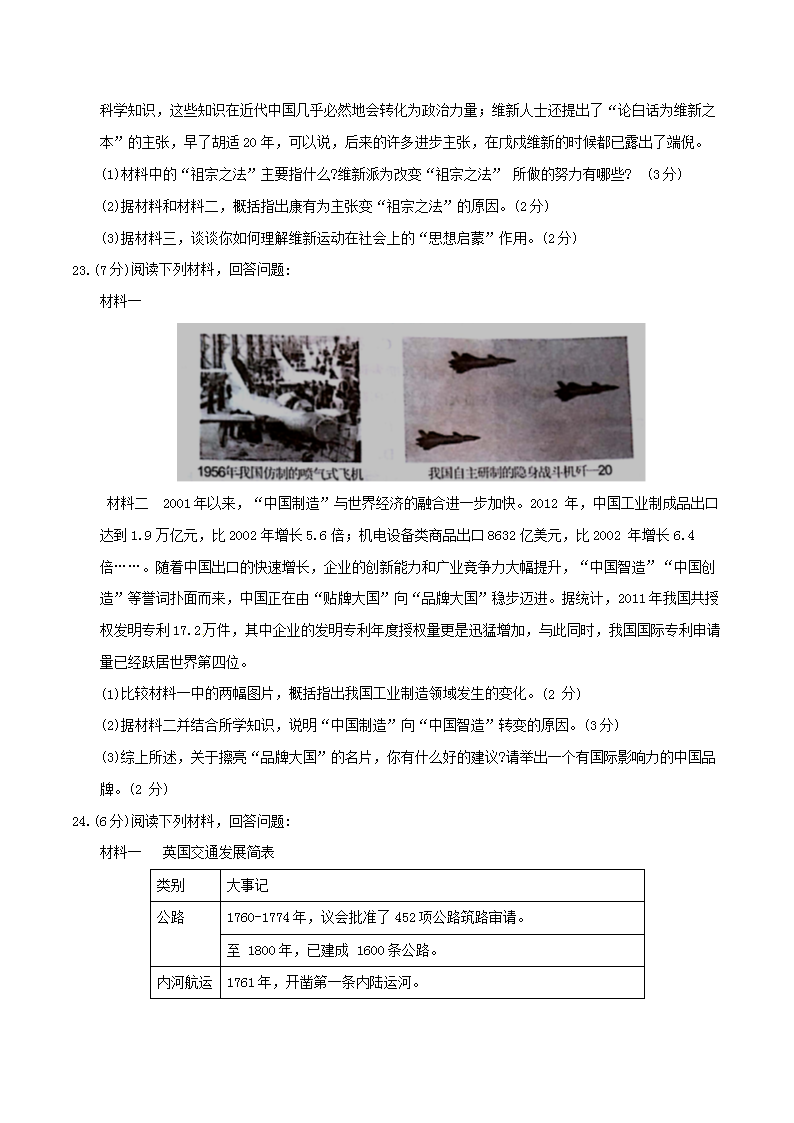 【文档名称】 2018年河南信阳中考历史真题及答案(Word版).doc