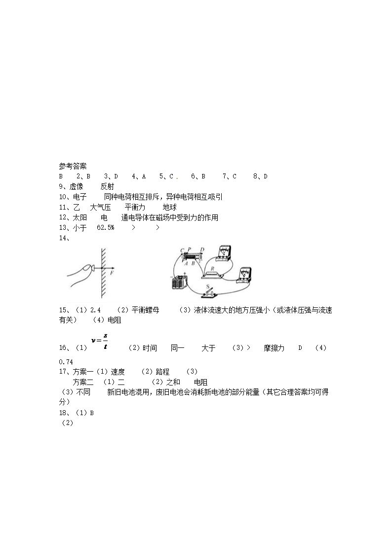 【文档名称】 2014年陕西省铜川中考物理真题及答案(Word版).doc