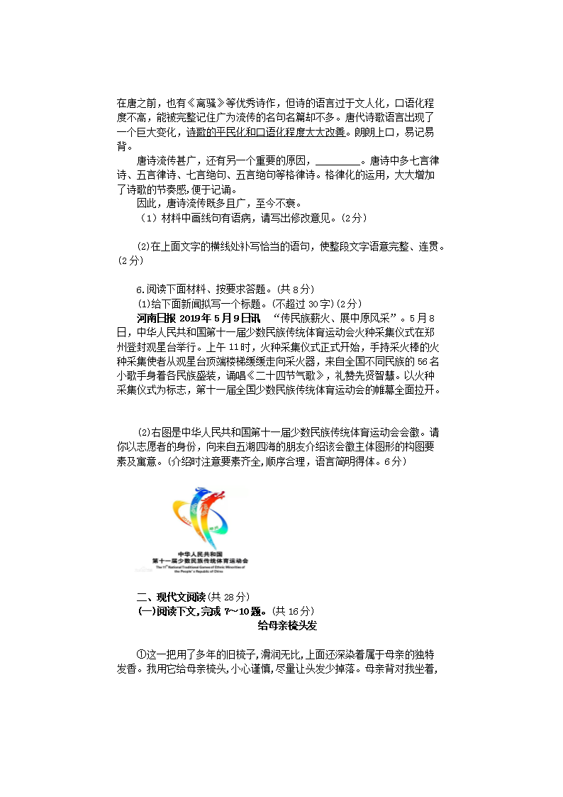 【文档名称】 2019年河南三门峡中考语文真题及答案(Word版).doc