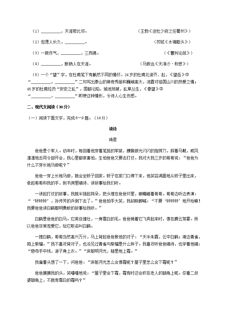 【文档预览】 无忧考网整理发布2019年甘肃省定西市中考语文真题及答案(Word版),前五页预览如下: