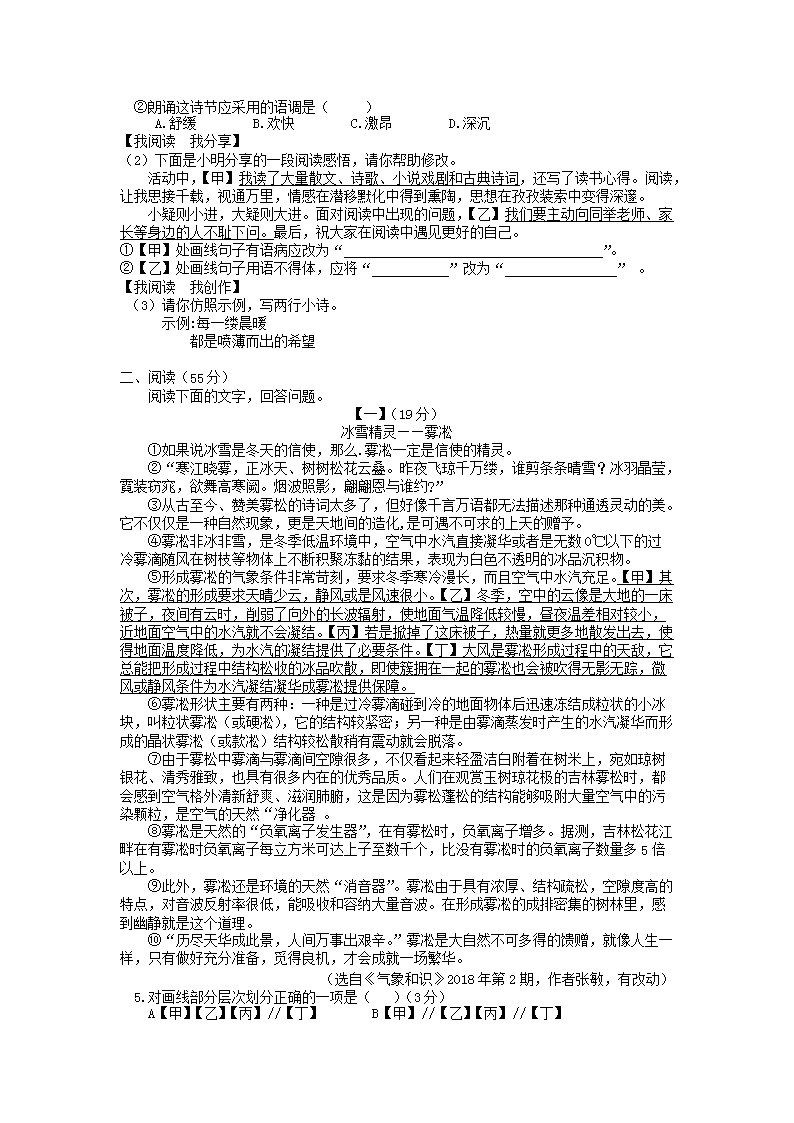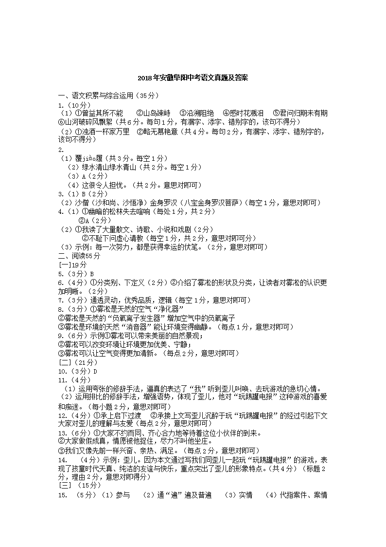 【文档名称】 2018年安徽芜湖中考语文真题及答案(Word版).doc