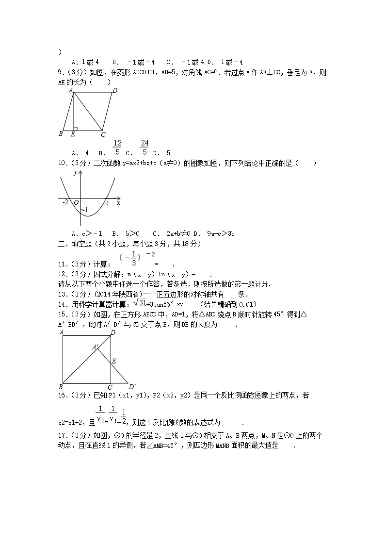 【文档名称】 2014年陕西省咸阳中考数学真题及答案(Word版).doc