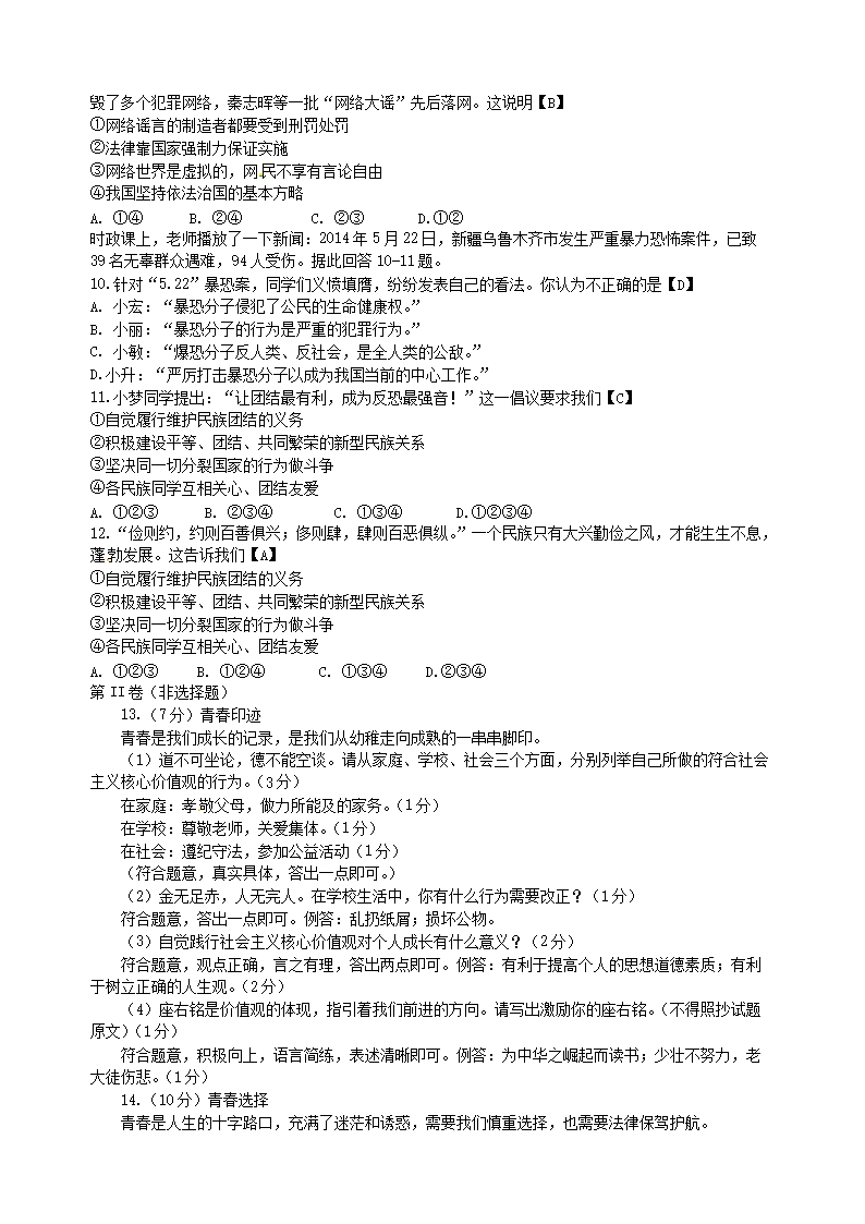 【文档名称】 2014年陕西省铜川中考政治真题及答案(Word版).doc