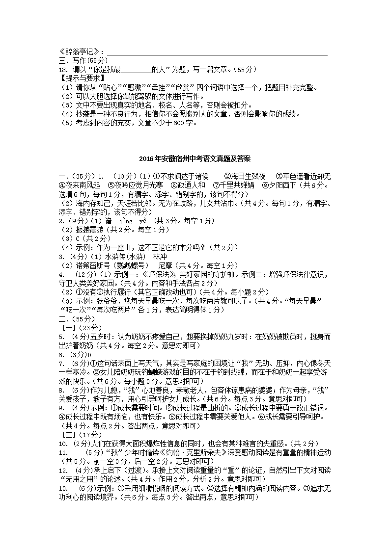 【文档预览】 无忧考网整理发布2016年安徽宿州中考语文真题及答案(Word版),前五页预览如下: