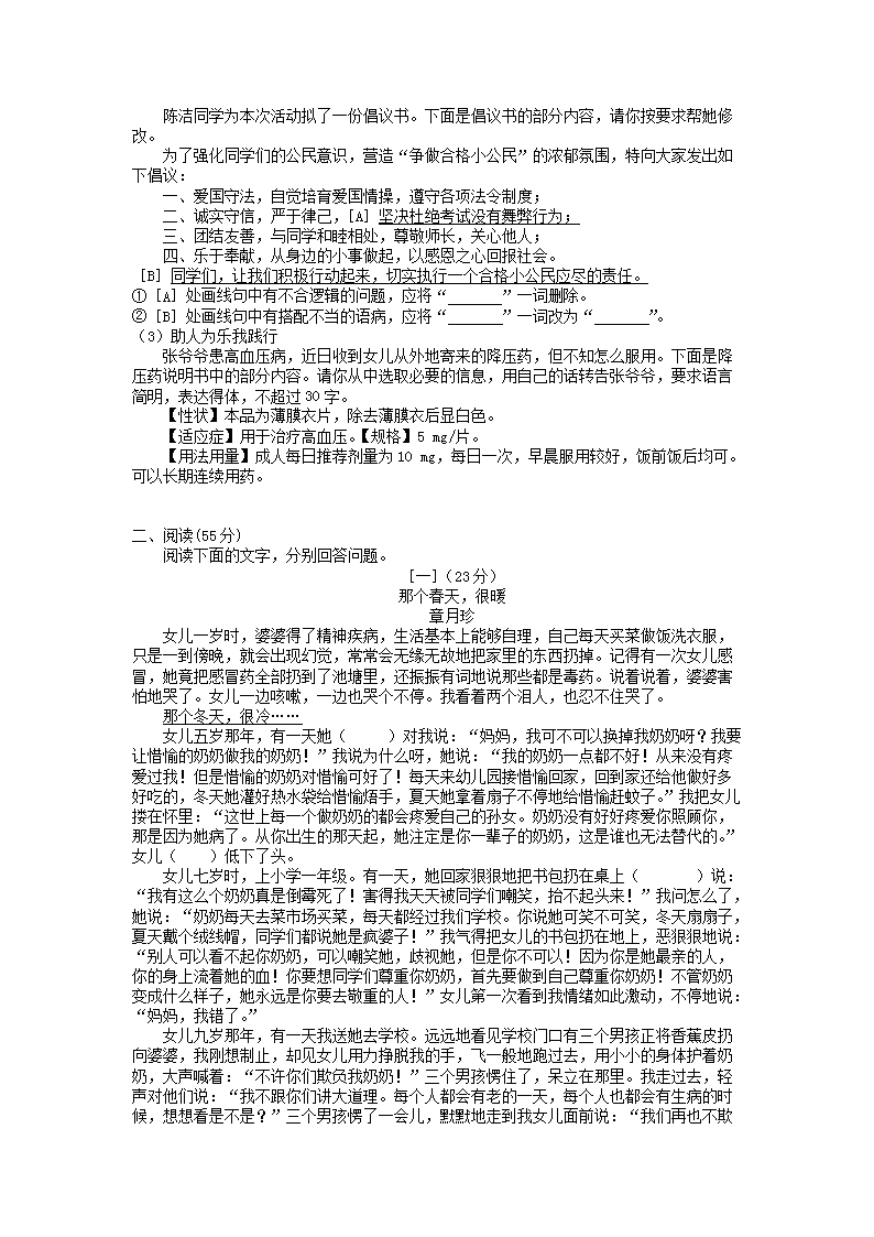 【文档名称】 2016年安徽宿州中考语文真题及答案(Word版).doc