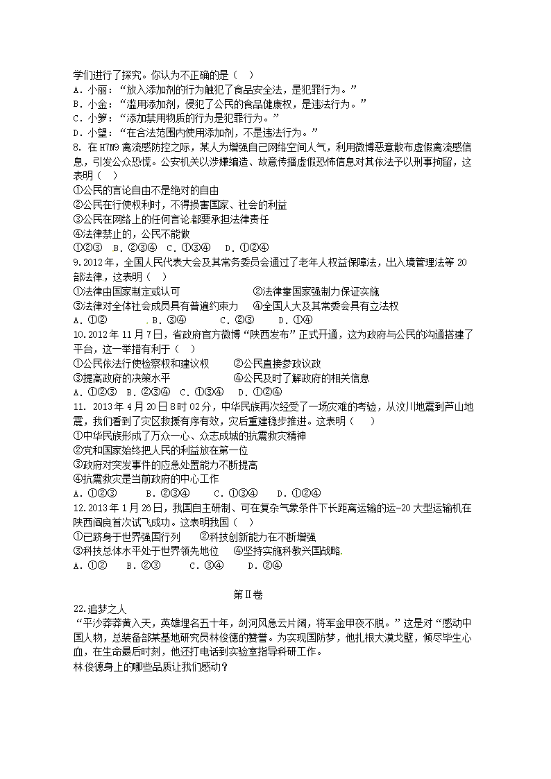 【文档名称】 2013年陕西省渭南中考政治真题及答案(Word版).doc